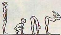 | 9. И. п.— руки на поясе. 1—-2 — напряженно прогнуться — вдох. 3— 4—выпрямиться, слегка наклониться, расслабиться —выдох | 10-12 | Прогибаясь, отвести локти назад |