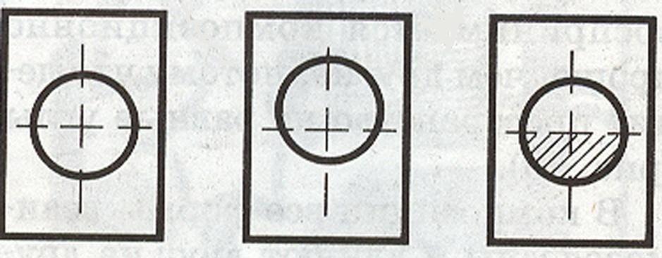 Чтобы фигура казалась изображенной в центре плоскости, ее нужно немного передвинуть вверх относительно осей формата. Тогда он будет находиться в состоянии статического равновесия. Круг, расположенный в центре, кажется смещенным вниз, этот эффект усиливается, если низ круга окрасить в темный цвет