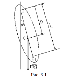 При колебании ФМ как бы вращается вокруг оси О (рис. 3.1). (Кстати, точку О пересечения оси с вертикальной плоскостью, проходящей через центр масс С тела, называют точкой подвеса). Следовательно, движение маятника подчиняется основному уравнению динамики вращательного движения: