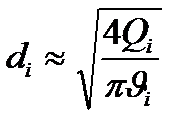 где di - внутренний диаметр трубопровода, мм; Qt - расход, л/с; S = 10д/19,6Р; - скорость водяного потока, м/с; Р, - давление, МПа.