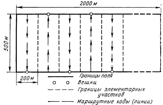 5. В конце второго отрезка на двух сторонах поля снова устанавливают вешки, ограничивающие второй элементарный участок, и т. д.