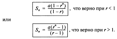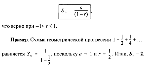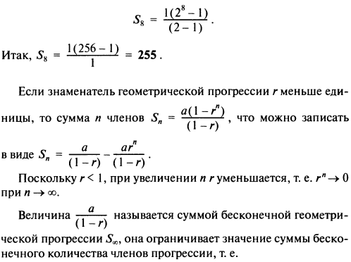 Пример. Сумма первых восьми членов геометрической прогрессии 1, 2, 4, 8,16,... (где а = 1 и r = 2) определяется формулой