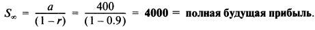 Пример. Фирма, дающая напрокат инструменты, обнаружила, что ее чистая прибыль за год от проката определенного инструмента ежегодно уменьшается на 10%. Чистый доход с определенного инструмента в этом году составил 400 фунтов. Определим всю возможную прибыль от проката этого инструмента в будущем (предполагаем, что инструмент вечен).