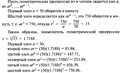 Пример. Сверлильный станок должен иметь диапазон скоростей от 50 до 750 оборотов в минуту. Определим значения скоростей, каждую с точностью до ближайшего целого числа, при условии, что скорости образуют геометрическую прогрессию.