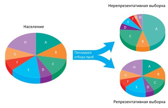Напротив, нерепрезентативные выборки могут привести к искаженным результатам. Лучше иметь меньшую, но репрезентативную выборку, чем большую, но нерепрезентативную. Если выборка не отражает характеристики популяции, прогнозы могут оказаться ошибочными. Например, газеты часто готовят две разные первые полосы на случай выборов, чтобы опубликовать подходящую статью в зависимости от исхода. Они знают, что прогнозы, основанные на экзит-поллах (опросы на выходе с избирательных участков), часто оказываются ошибочными из-за неподходящей выборки. Плохая выборка — плохой прогноз. Таким образом, при интерпретации результатов опросов всегда следует учитывать характер выборки.