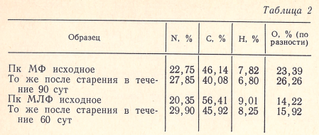 В литературе имеются указания, что при разрушении Пк на основе амино-формальдегидных смол возможно образование аммиака. Этот процесс, по всей вероятности, протекает в незначительной степени, поскольку нами установлено (табл. 3), что при старении таких Пк происходит увеличение содержания азота.