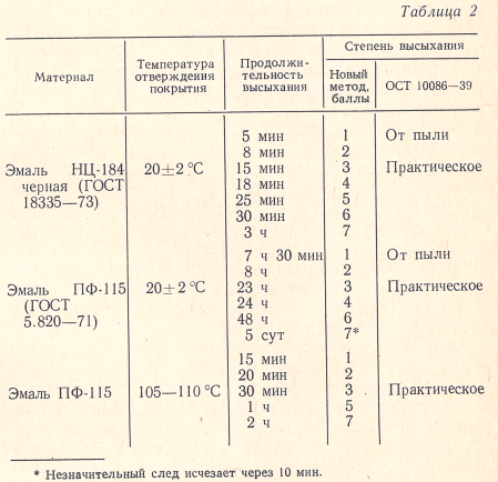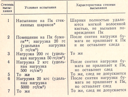 Высыхание характеризуется семью степенями (табл. 1), что позволяет быстро и достаточно точно определить требуемую условиями производства твердость Пк.