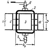 Фиг. 15. Подвижная система гальванометра. 1 - магнит; 2 - рамка; 3 - сердечник; 4 - балансировочный груз, 5 и 6 - пружины; lp - активная длина рамки; bр - ширина рамки