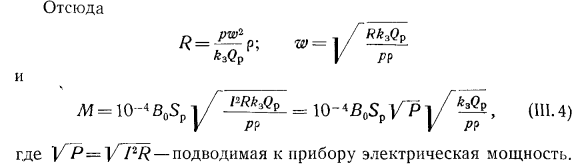Если мощность, подводимая к прибору, мала (случай весьма частый), то важно знать условия наибольшей чувствительности прибора, т. е. условия получения наибольшего значения вращающего момента М при заданной наименьшей мощности Р.; тогда в выражения для w, q, М следует вводить именно это значение мощности Р.
