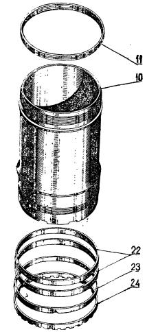 Верхняя часть гильзы имеет резьбу специального пилообразного профиля, которой она крепится в головке блока. Для герметичности по стыку гильзы с головкой поставлено стальное эластичное кольцо 11. При ввертывании гильзы в блок верхний торец буртика гильзы, опираясь на плоскость эластичного кольца, сжимает кольцо в пределах его упругой деформации и прижимает обе его торцевые плоскости с определенным усилием затяжки к плоскостям выточки блока и торца гильзы.