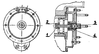 Фрикционная передача предохраняет зубчатый привод генератора от действия на его зубья динамических нагрузок, возникающих при резких изменениях режима работы мотора, от вращающихся частей генератора.