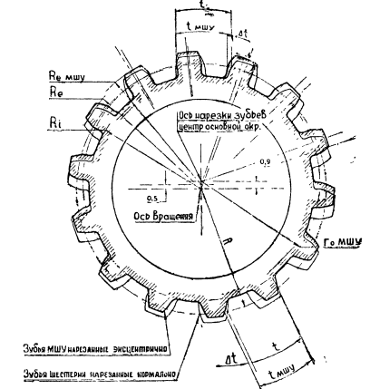 Фиг. 46. Схема эксцентричной нарезки зубьев МШУ