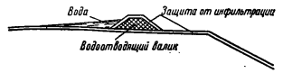 В этих же случаях бывает целесообразно вместо устройства канав делать насыпные водоотводные валики с соответствующим укреплением (фиг. 50).