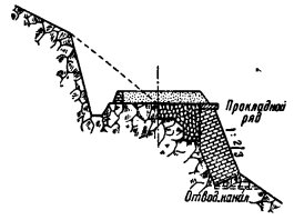 С верховой стороны насыпь с самого начала работ ограждается устройством нагорной канавы для перехвата поверхностных вод.