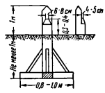 При сооружении фундаментов опор в шпунтовых ограждениях вся разбивка, относящаяся к положению фундамента, обычно закрепляется при помощи гвоздей, забитых в шпунтовый ряд.