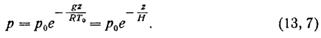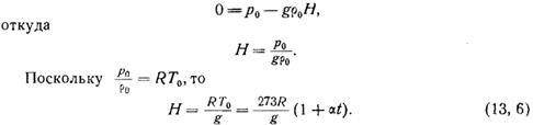 Определим высоту однородной атмосферы, положив в формуле (13, 5) р = 0, тогда
