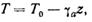 Но так как давление в однородной атмосфере изменяется с высотой линейно, то и температура также падает линейно, т. е.