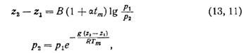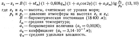 Полная барометрическая формула (13, 10) применяется только для высокоточного барометрического нивелирования. Для других целей ее обычно упрощают, сообразуясь с точностью исходных данных.