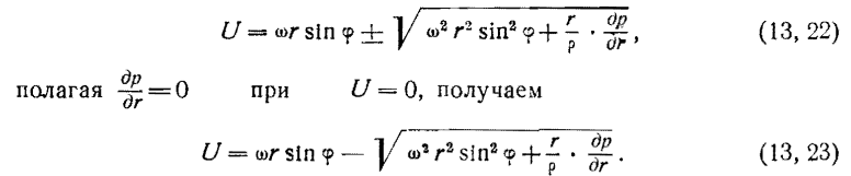 Чтобы определить знак перед радикалом, допустим, что др/дr = 0, тогда U = 0, а это возможно лишь в случае, когда перед радикалом будет положительный знак. Таким образом, скорость установившегося ветра в циклоне будет: