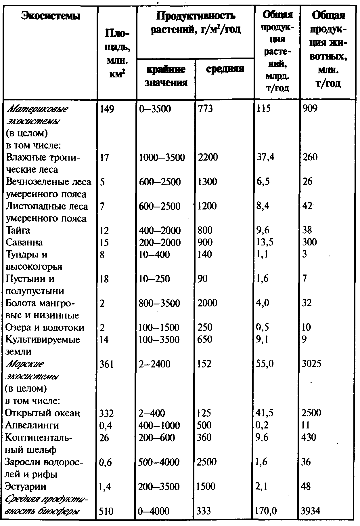 Таблица 3. Продуктивность основных экосистем земного шара (по Н. Ф. Реймерсу, 1990)