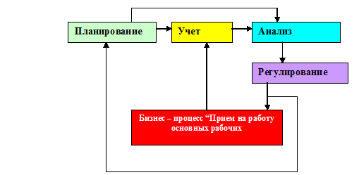 Рис. 7.3. Замкнутый контур управления по бизнес – процессу “Прием на работу основных рабочих”.