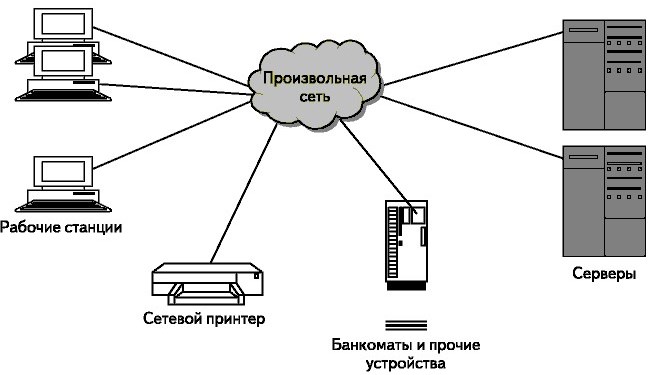 Рис. 25. Общая схема сети банка иллюстрирует типичное взаимодействие компонентов в такой архитектуре.