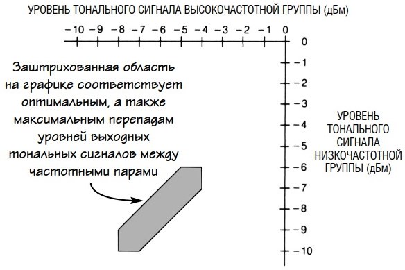 Рис. 2.6. Технические условия на уровень передаваемых двухтональных многочастотных сигналов