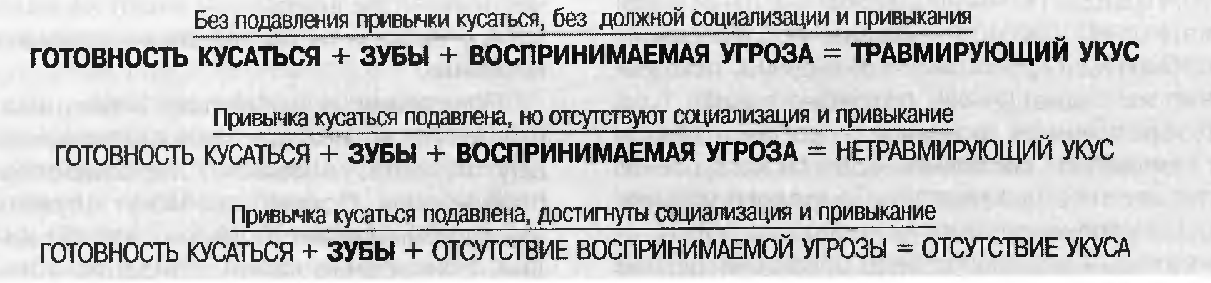 Проявления боязливости меняются с возрастом: в 3 недели щенок замирает, в 14 недель – убегает, а к 6-7 месяцам может реагировать агрессивно. Страх, выражающийся в агрессии, является частой причиной эвтаназии, поэтому его ранние проявления требуют серьезного отношения. В таких случаях необходима немедленная консультация со специалистом по поведению, а не просто посещение стандартных занятий для щенков, которые могут усугубить проблему при неправильном проведении. Как показано на рис. 2.1, для предотвращения агрессии необходимо снизить уровень воспринимаемой угрозы и подавить привычку кусаться.