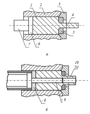 Рис. 3.1. Схема прямого прессования: а – прутков; б – труб