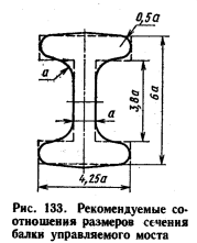 Методика определения размеров основных деталей моста. Основные геометрические параметры балки управляемого моста определяются из условий обеспечения прочности и жесткости. Рекомендуемые соотношения для двутаврового сечения балки показаны на рис. 133, где штриховой линией обозначено эквивалентное расчетное сечение. Моменты сопротивления такого сечения составляют примерно Wв = 20a³ в вертикальной плоскости и Wг = 5,5a³ в горизонтальной плоскости, где "a" – ключевой конструктивный размер.