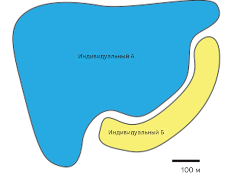Рис. III.II: Сравнительные размеры мицелия двух особей гриба вида Armillaria bulbosa.