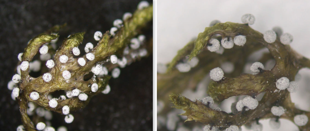 Рис. IV.III: Плодовые тела миксомицетов, сформировавшиеся на мху.