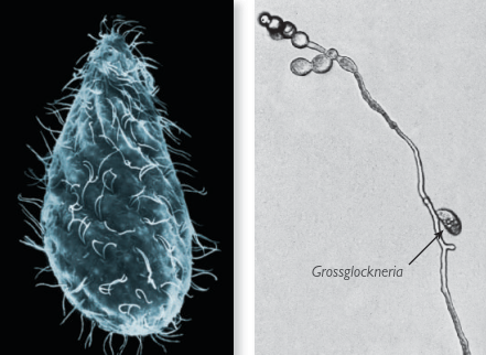 Рис. V.I: Инфузория Grossglockneria acuta (около 70 мкм) — представитель специфической почвенной группы гроссглокнериид. Имеет специализированный ротовой аппарат и питается грибными гифами.