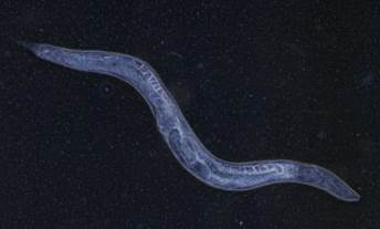 Рис. VIII.II: Нематода вида Pristionchus pacificus. Этот вид используется в качестве модельного организма в макро- и микроэволюционных исследованиях.