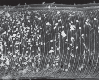 Рис. VIII.III: Почвенная нематода (длина около 300 мкм), кутикула которой колонизирована бактериями (длина около 3 мкм).