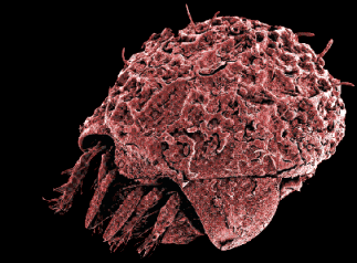 Рис. X.V: Орибатидный клещ Eupelops torulosus. Тело покрыто толстым церотегументом, обеспечивающим защиту от высыхания и хищников. Хорошо заметны ушковидные птероморфы по бокам тела.