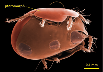 Рис. X.VII: Орибатидный клещ рода Galumna с хорошо развитыми птероморфами, которые используются не для полета, а для защиты придатков тела.