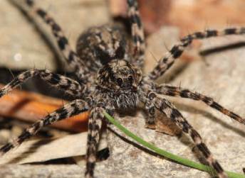 Рис. XIX.I: Представители пауков, такие как паук-волк Acantholycosa lignaria, часто не плетут ловчих сетей, а обитают в почвенных норах или под камнями, откуда и охотятся.