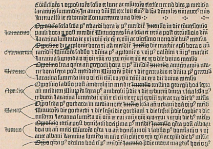 Среди первых печатных произведений медицинской тематики, наряду с научными трудами, видное место занимали сочинения популярного характера. Первым таким трудом стал «Календарь кровопусканий и слабительных» на 1457 год, отпечатанный в Майнце в конце 1456 года с использованием шрифта 36-строчной Библии. Этот календарь, содержавший рекомендации на латыни по благоприятным дням для процедур (Minutio – кровопускание, laxatio sumenda – приём слабительных), породил более 200 подражаний на немецком и латинском языках, изданных до 1501 года.