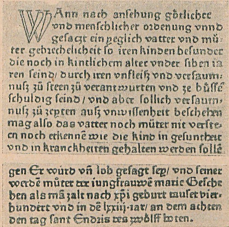 Рис. 93. Начало и конец первого издания «Режима для маленьких детей» Барт. Метлингера. Аугсбург, 1473 г.