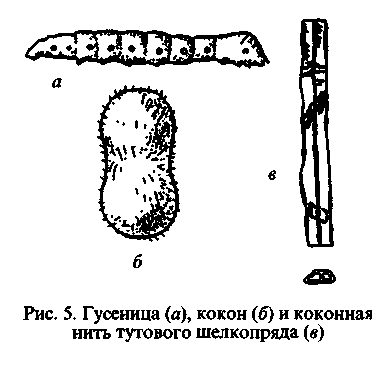 После обработки паром и сушки коконы разматывают, получая шелк-сырец. Он обладает высокой прочностью, хорошим разрывным удлинением (около 60% которого – упругая деформация) и красивым матовым блеском. Натуральный шелк химически более стоек, чем шерсть, но его прочность в мокром состоянии снижается на 5-15%. Главным недостатком является низкая светостойкость. Шелк применяется для изготовления тонких платьевых, атласных, декоративных и высокопрочных технических тканей.