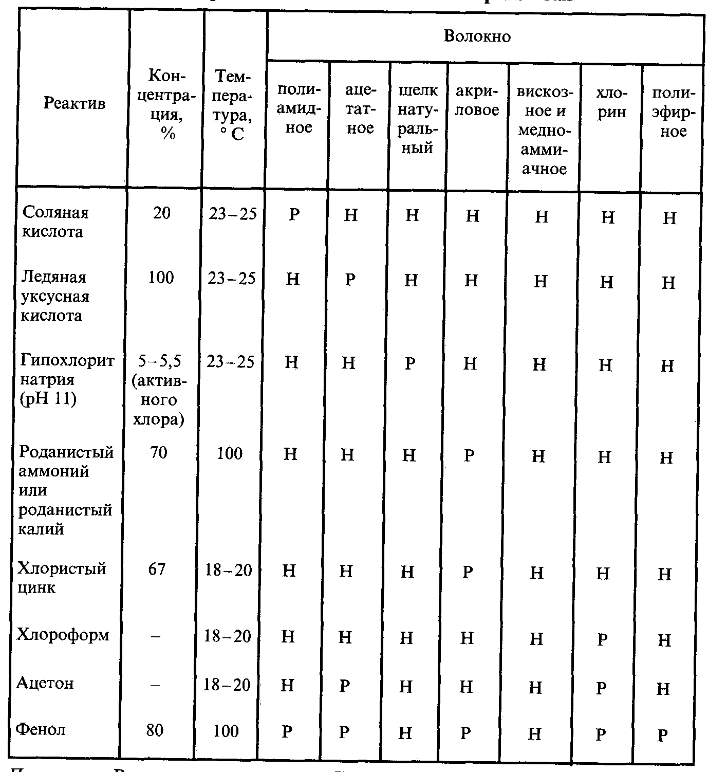 Таблица 1. Растворимость волокон в химических реактивах