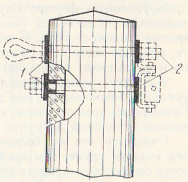 Рис. 72. Изоляция деталей крепления консолей от арматуры железобетонных опор: 1 — изолирующие втулки, 2 — детали крепления консоли