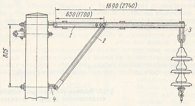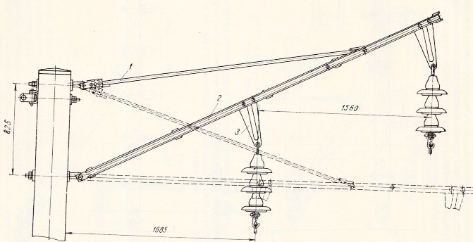Рис. 83. Фидерная консоль с тягой для подвески двух проводов ДПР.