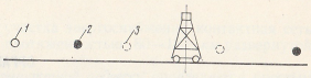 Рис. 185. Схема ограждения места работ съемной монтажной вышки на перегоне: 1 – сигналист-оповеститель, 2 – основной сигналист, 3 – промежуточный сигналист.