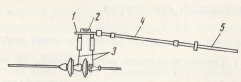 Рис. 207. Штанга-указатель поврежденных изоляторов: 1 — измерительная головка, 2 — индикаторная лампа, 3 — щупы, 4 — удлинитель, 5 — ручка-захват.