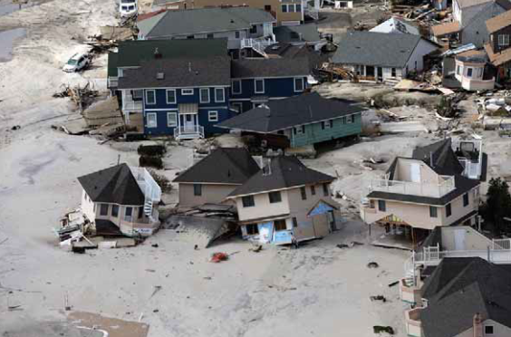 Рис. 1.2. Ураган Сэнди. Часть береговой линии Нью-Джерси вскоре после того, как этот огромный шторм обрушился в конце октября 2012 года. Шторм был особенно разрушительным, поскольку он обрушился на регион с высокой плотностью населения и обширной застройкой. Смещение береговых песков и желание людей занять эти районы часто находятся в противоречии