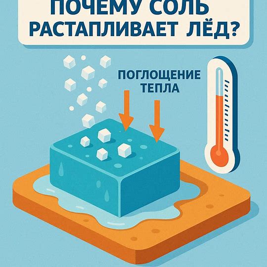 Таким образом, отнять у тела тепло означает уменьшить его внутреннюю энергию, заставив совершить работу. Когда лед плавится без внешнего притока энергии, он использует собственный запас, что проявляется в снижении температуры смеси. Вопрос заключается в практической реализации: как заставить лед самостоятельно затратить свою энергию на плавление? Решение основано на коллигативных свойствах растворов, а именно на понижении температуры замерзания жидкости при добавлении растворенного вещества.