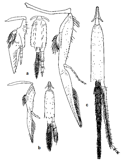 Рисунок 8-1. Сравнение ротовых структур пчел-аллодапинов: социальные паразиты Eucondylops reducta Michener (а) и Nasutapis straussorum Michener (b) демонстрируют редукцию размеров хоботка и изменение сегментации щупиков по сравнению с непаразитическим видом Allodapula melanopus (Cameron) (c). Все рисунки выполнены в одинаковом масштабе. Модифицировано по Michener, 1970.