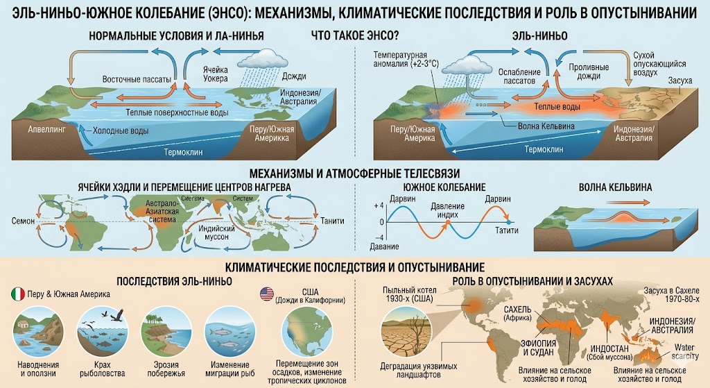 Эль-Ниньо-Южное колебание (ЭНСО): механизмы, климатические последствия и роль в опустынивании